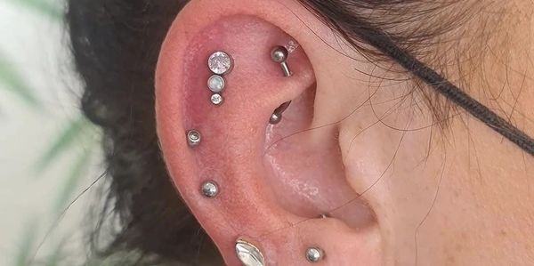 - Earlobe & Cartilage: Standard lobe, helix, conch, tragus, rook, daith, industrial